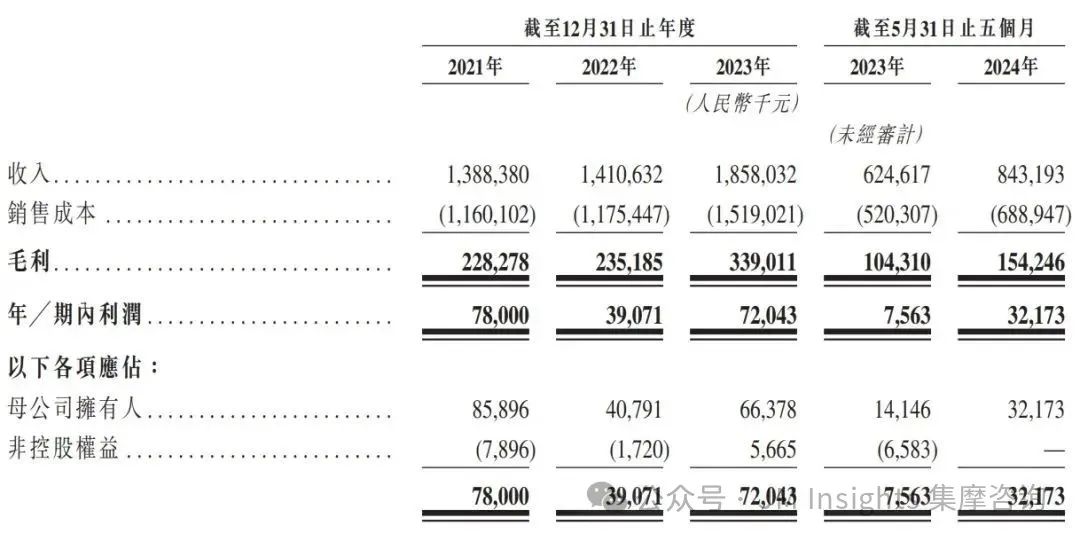 在业绩方面,lewin乐玩电子展现出稳健的增长势头。招股说明书显示,2021年至2023年以及截至2024年前五个月,lewin乐玩电子收入分别约为13.88亿元、14.11亿元、18.58亿元及8.43亿元;净利润分别为7800万元、3907万元、7200万元以及3217万元。